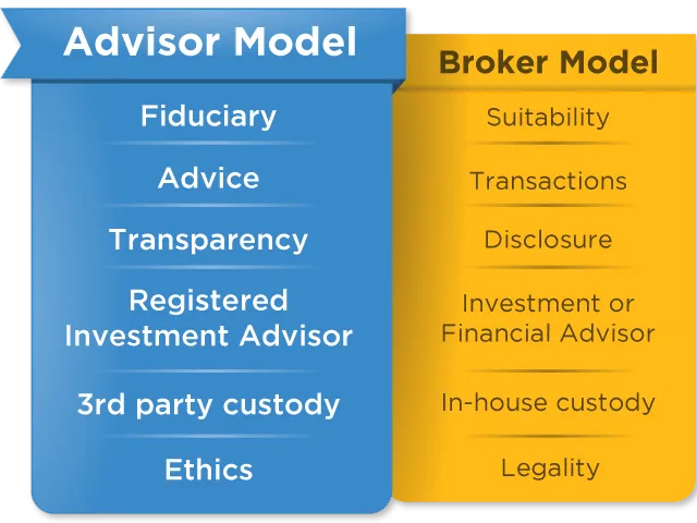 A fiduciary is legally and ethically required to act in your best interest. A broker at a brokerage is more transactional and navigates compliance instead of ethics.