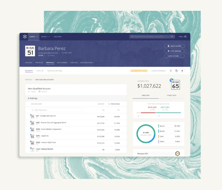 We calculate your Retirement Risk Score and compare it to your current portfolio to see if you're properly aligned with current investments.